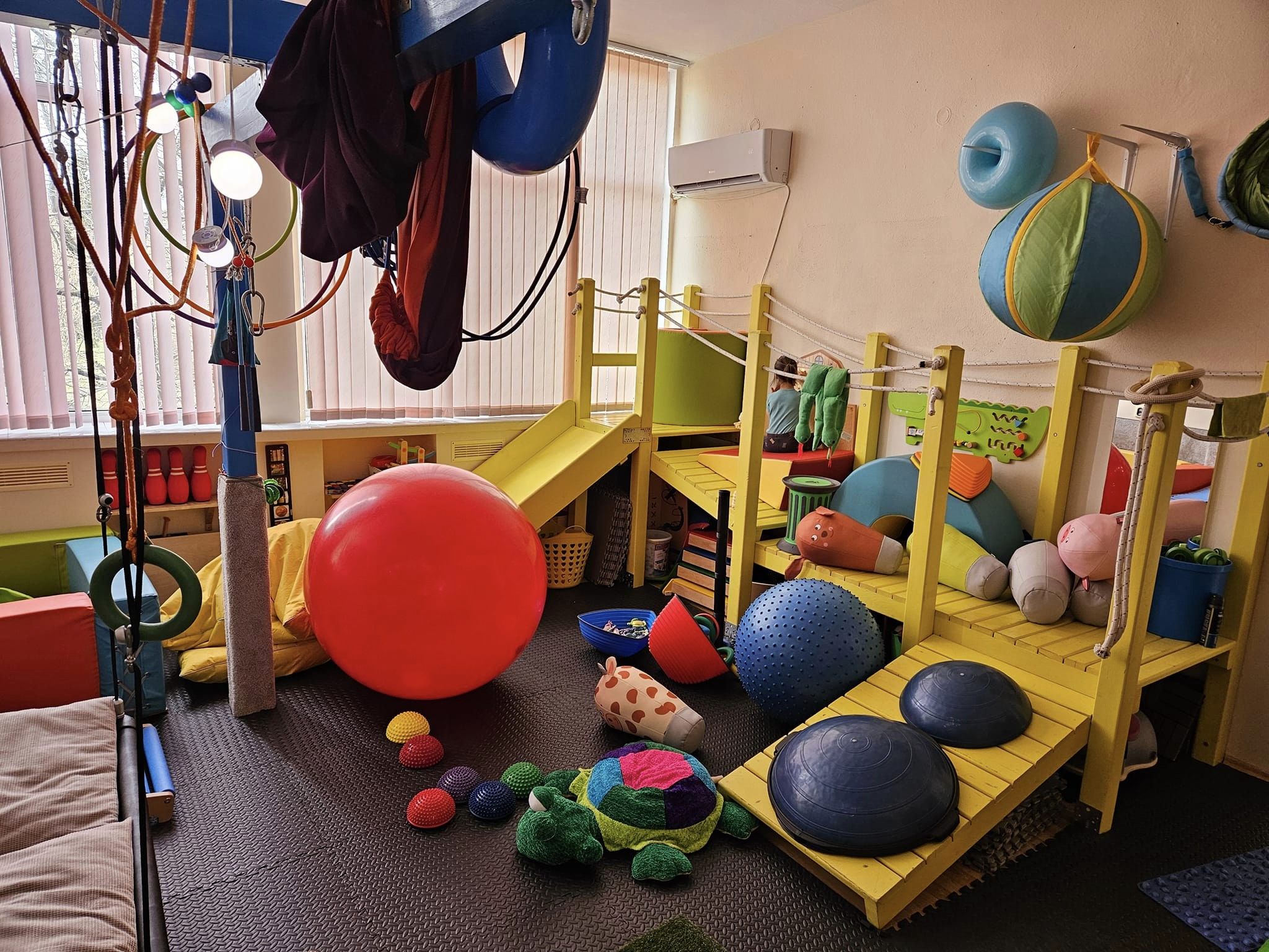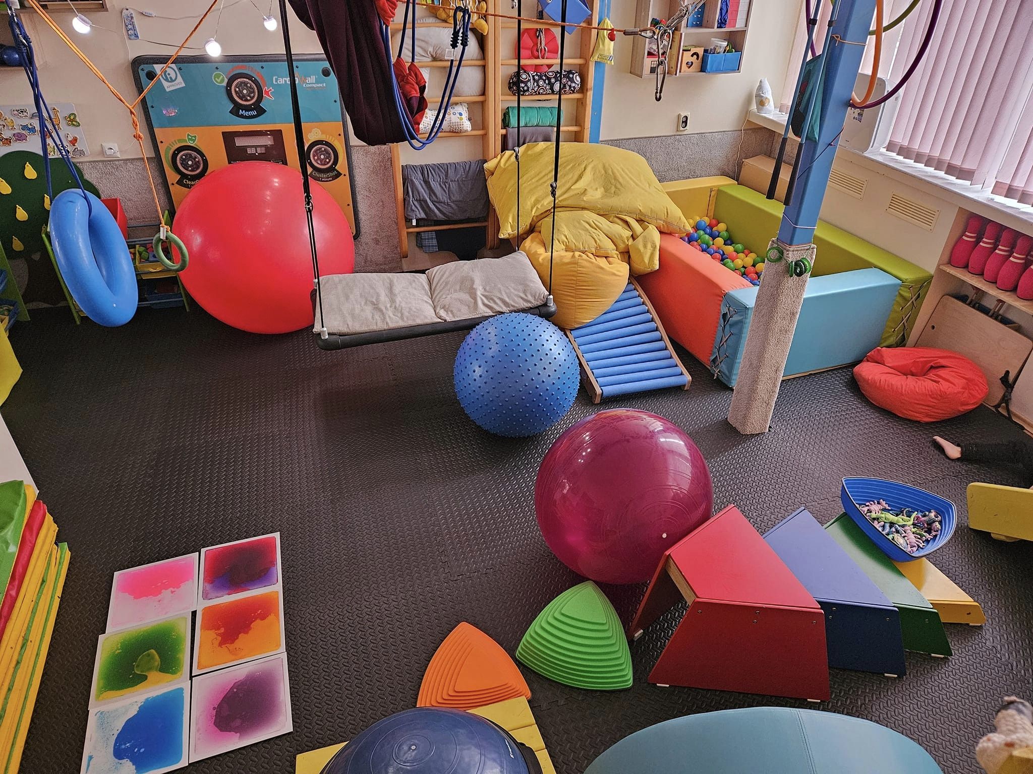 Разполагаме с разнообразно оборудване: различни видове люлки, платформа за изкачване и пързаляне, шведски стени, басейн с топки и различни игри. Оборудването се обновява и обогатява съобразно нуждите на програмата, като се обезпечава възможността за предоставяне на различни видове сензорно стимулиране.